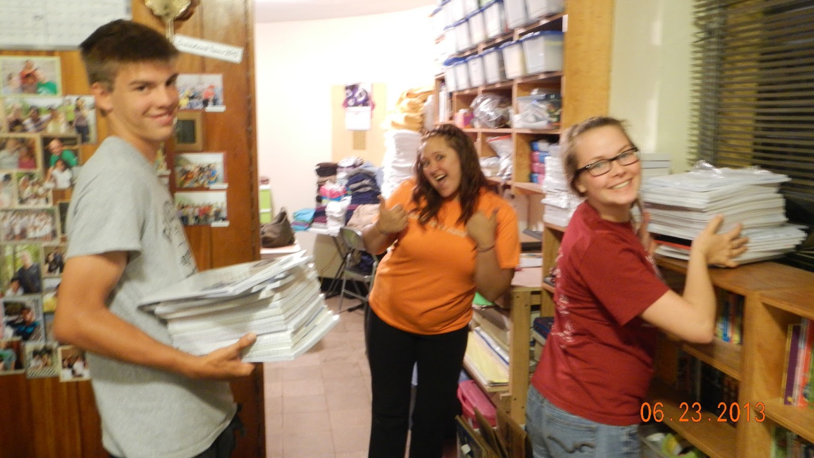 After dinner we continued to practice and ended the evening unloading supplies, sorting, counting, and boxing with the precision of, well, let's say an unnamed, retired military individual. (He's a keeper!) Photos are found below. We also had to melt the ends of 250 cords for an adult craft,